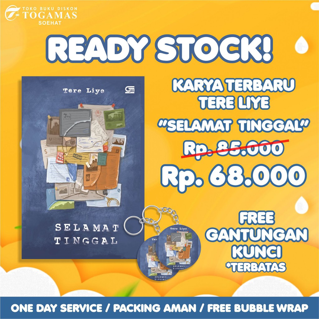 Produk Ready Stock Novel Selamat Tinggal Karya Tere Liye - Free Gantungan Kunci (Terbatas) ini harganya adalah Rp. 68.000,00 dan saat ini sedang Diskon 20%, Produk ini sendiri saat saya tulis Artikel ini sudah dilihat sebanyak kali dan sudah disukai sebanyak 167 kali.